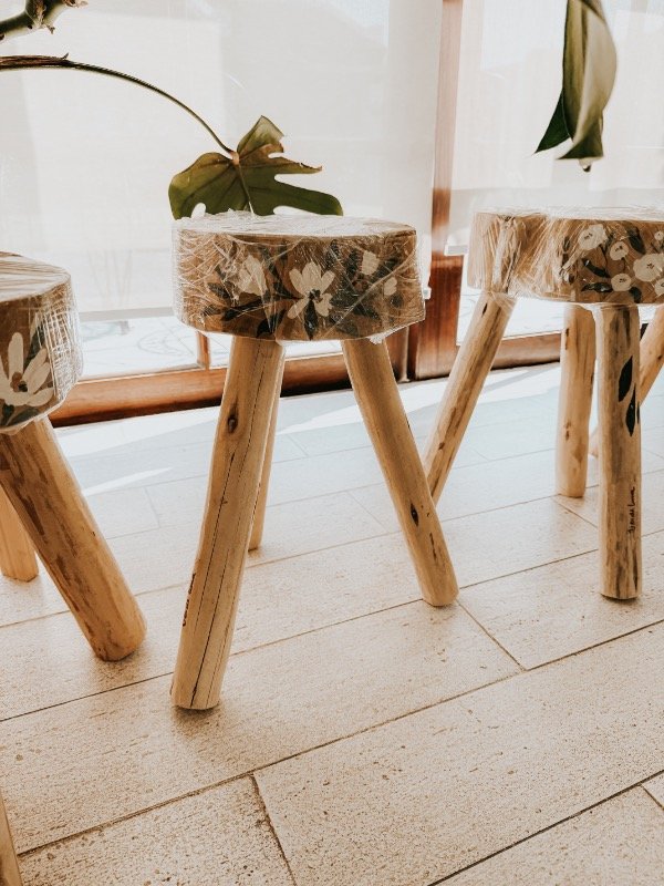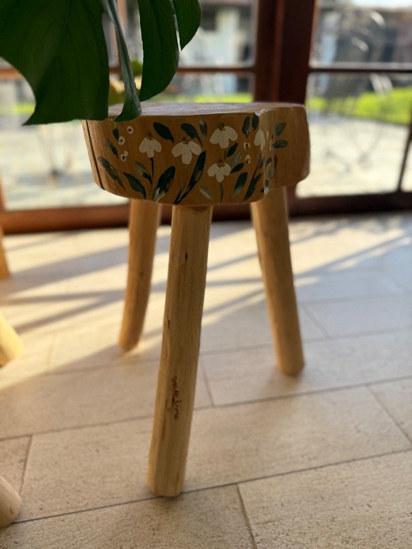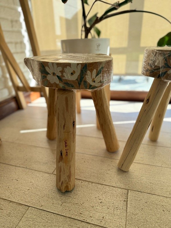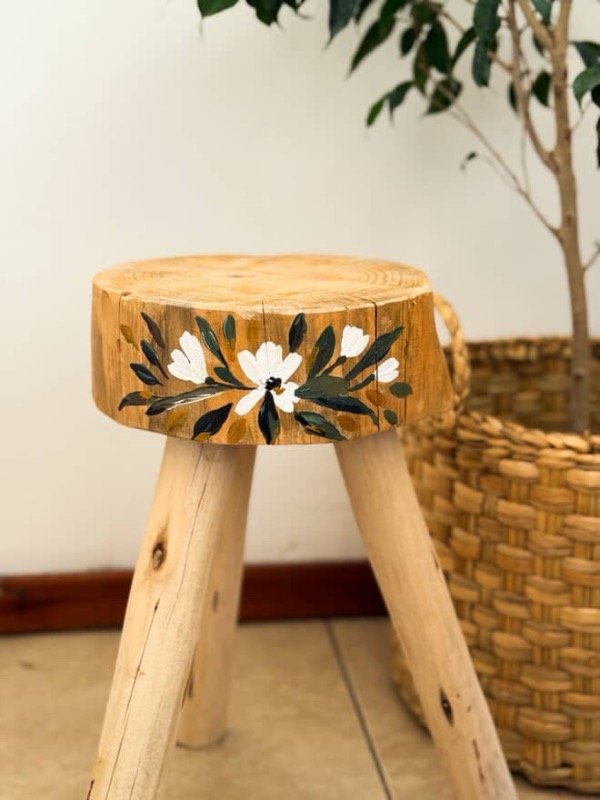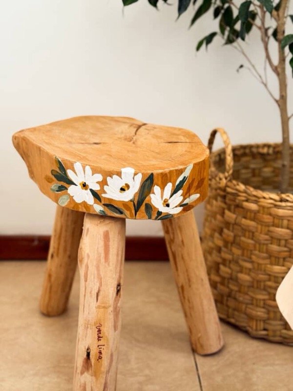 Banco magnolia realizado artesanalmente en madera ciprés, pintado a mano.