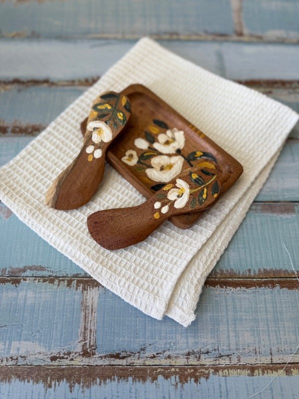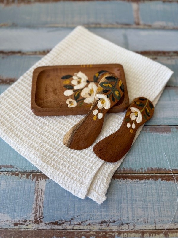 Mantequera Aleli, realizado en madera de alagarrobo, pintado a mano.